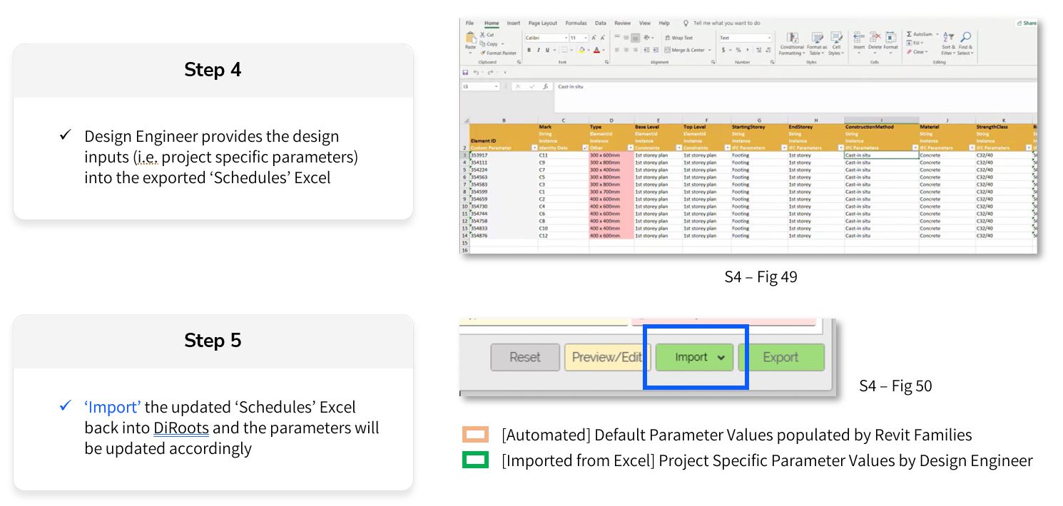 DiRoots is a free plug-in to export BIM data (Model and Annotation Categories, Elements and Schedules) from Revit to Excel or Google Spreadsheets, and import it back to update the model.