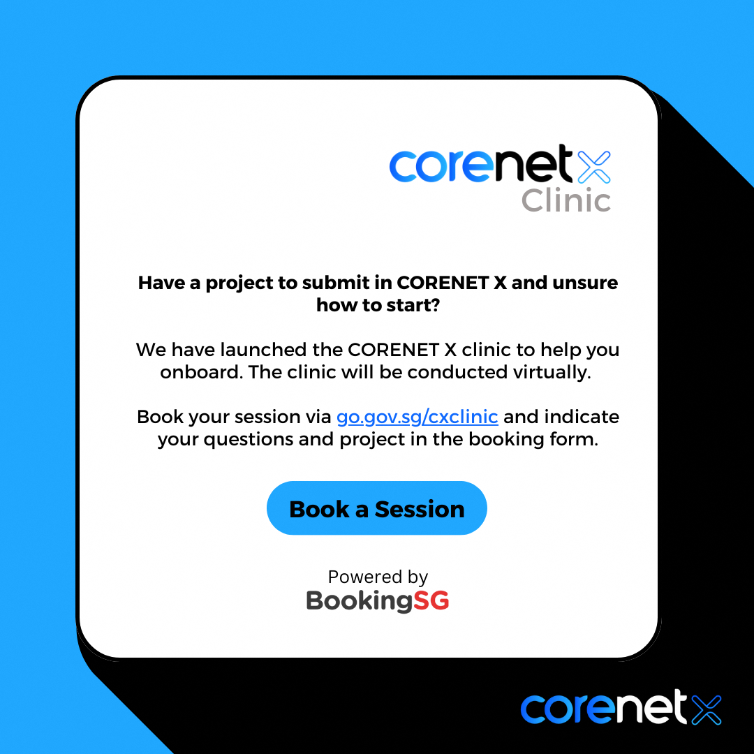 For commonly asked questions, please visit our CORENET X website at https://info.corenet.gov.sg/.